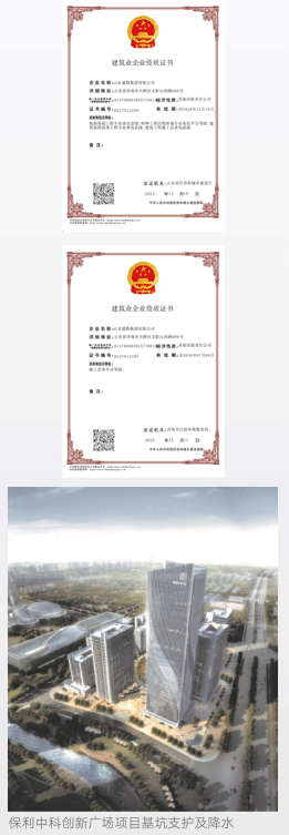 集团公司拥有地基基础工程专业承包壹级资质和结构补强施工资质。